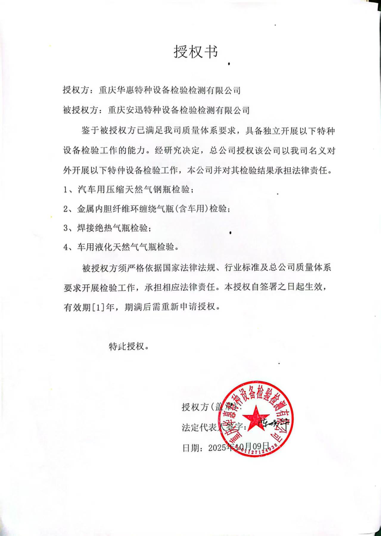 子公司(安迅)授权公告